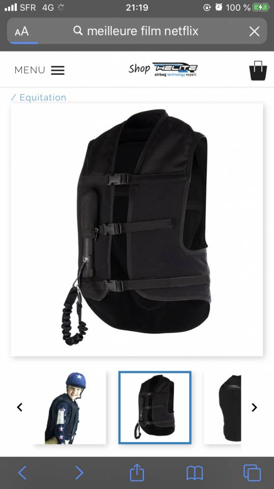Bonjour, je vends mon air bag Helite car il est devenu trop petit pour moi.
