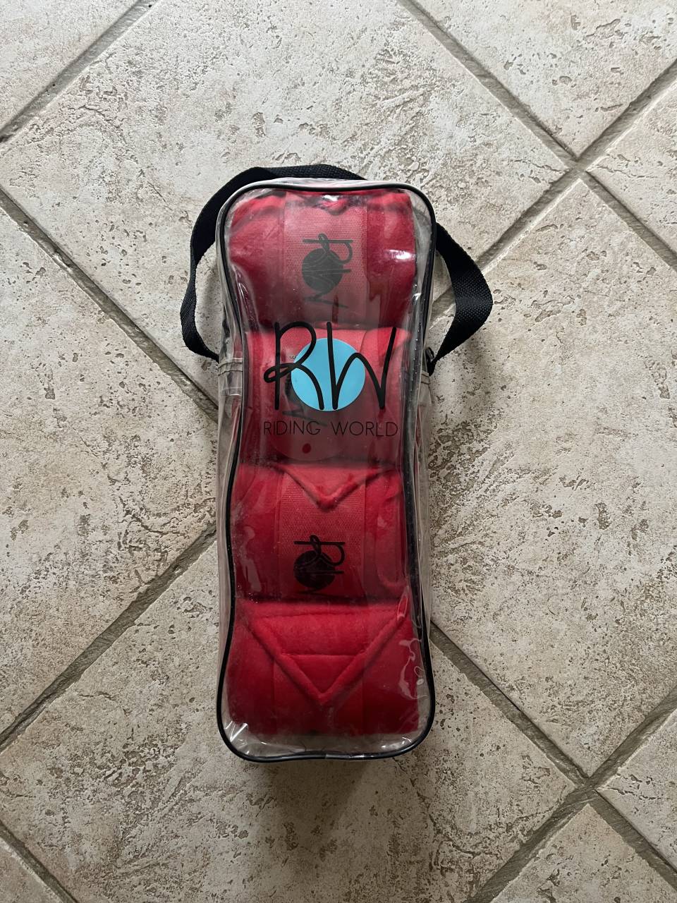 Je vend un lot de 4 bandes de polo rouge de 3 mètres de la marque Riding World.