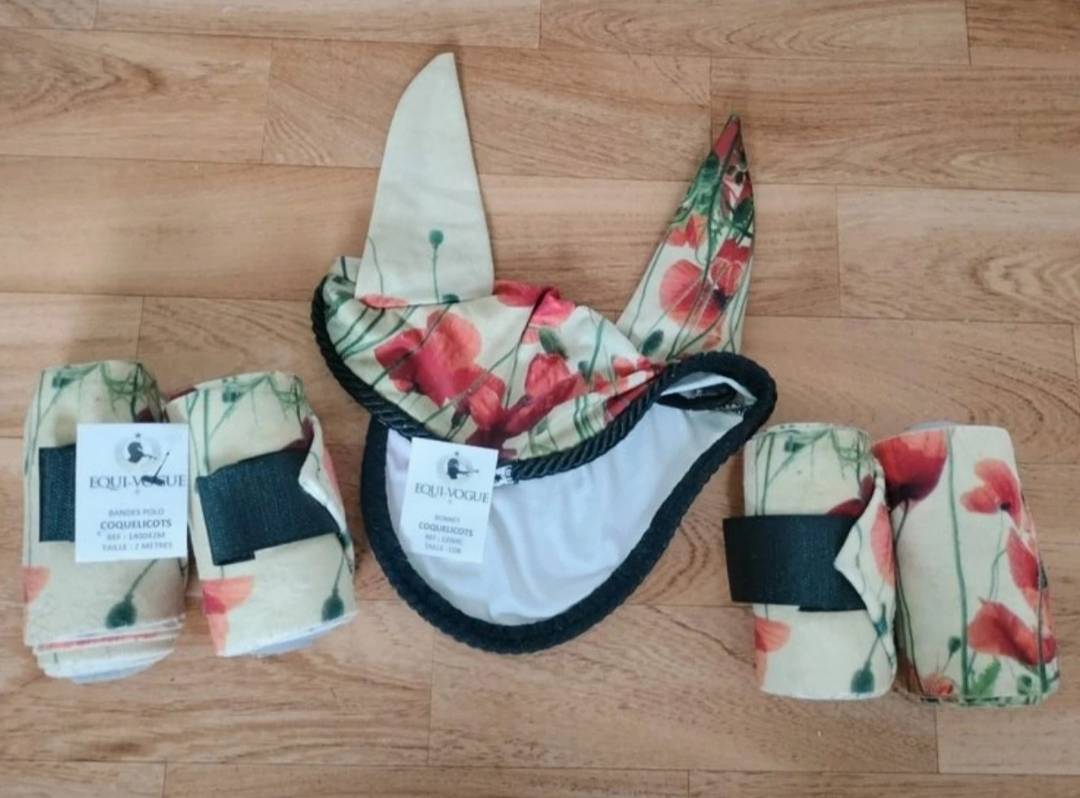 4 bandes de polo + bonnet motif coquelicot.