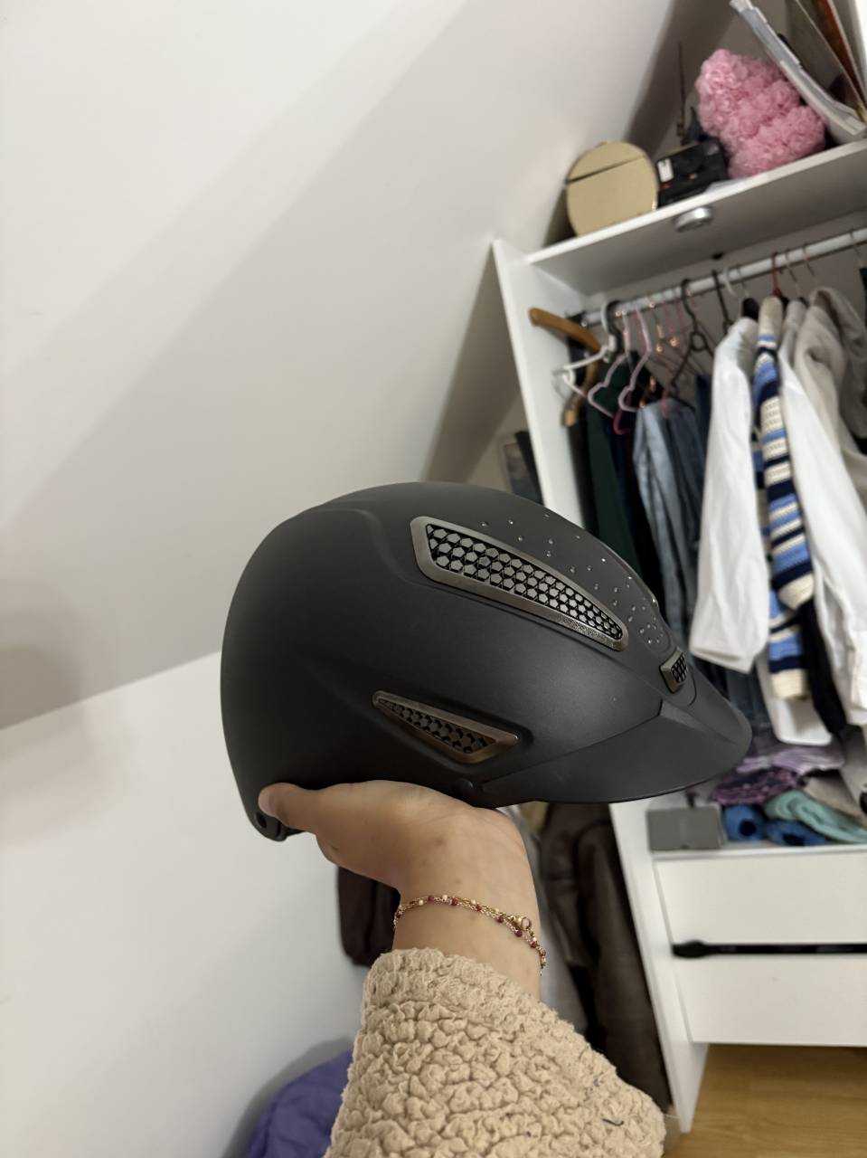 Munissez-vous d'un mètre ruban, mesurez votre tour de tête au plus large en partant du milieu du front, sans serrer. Plus facile si vous vous faites aider. La taille EU d'un casque d'équitation correspond au tour de tête exprimé en centimètres. Important : Le casque doit épouser au mieux la forme de votre tête. Il ne doit en aucun cas pouvoir bouger lorsque vous secouez la tête.