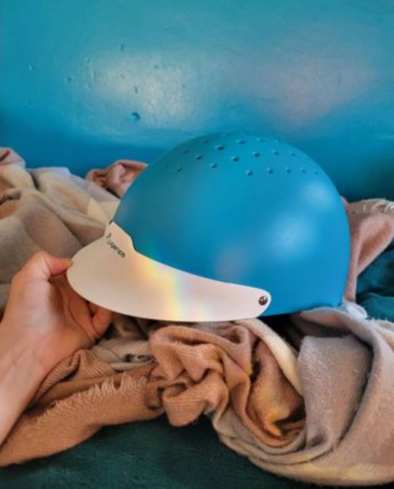 Couleur bleu turquoise et blanc très peu porté réglable à l'arrière. Super etat