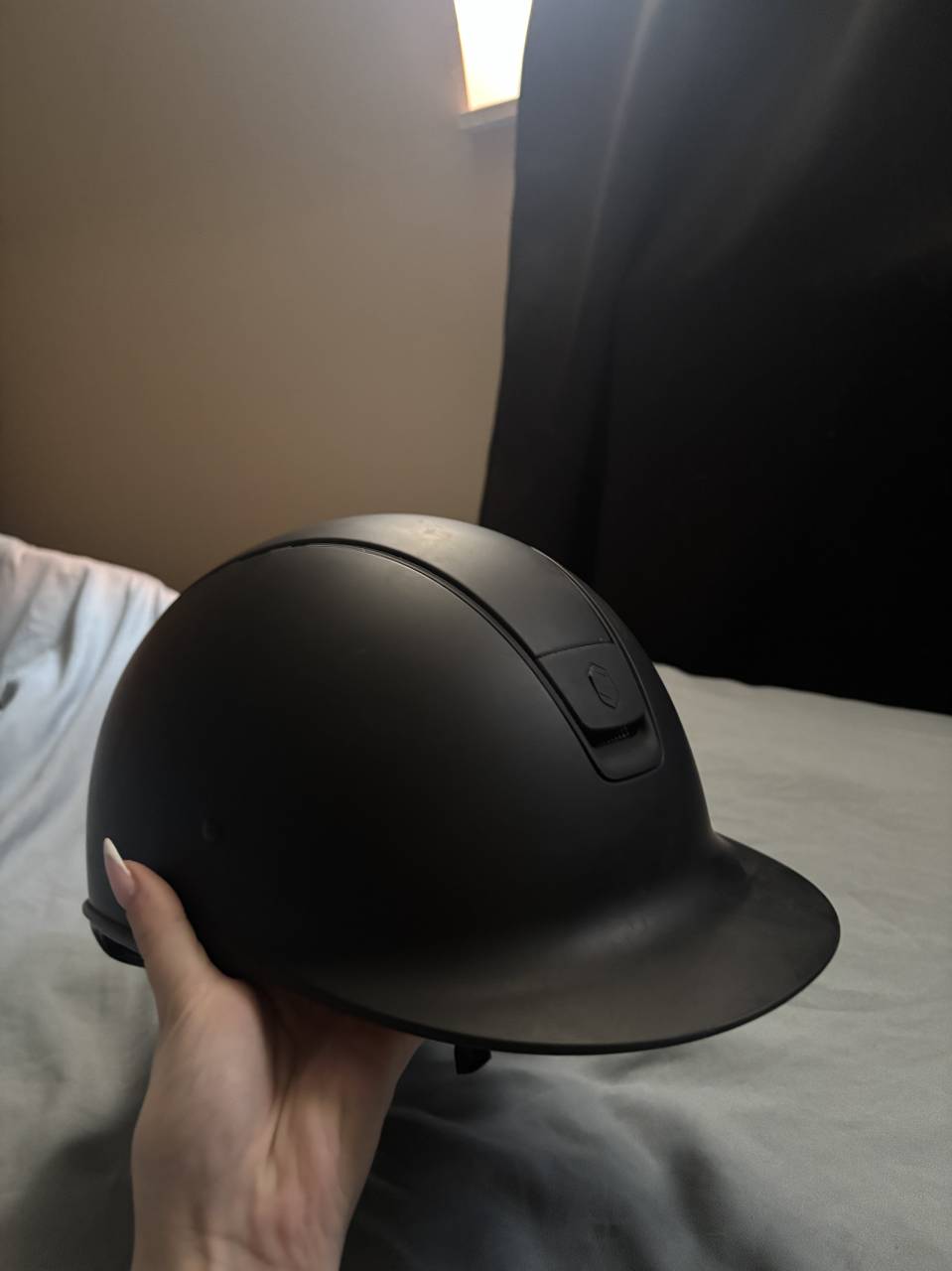 Je m’en sépare aujourd’hui à contre-cœur, ayant arrêté l’équitation. La bombe n’a jamais subi de choc et la révision a été effectuée, garantissant ainsi sa sécurité et sa fiabilité.
