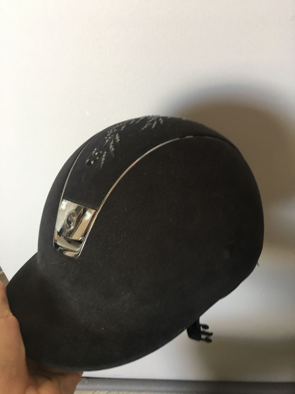Vends Bombe Samshield, alcantara noir, fleurs en diamants Swarovski. Coque taille M.