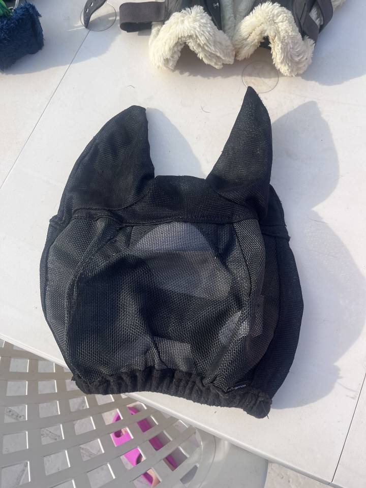 Vends un bonnet anti mouche, noir, taille poney, neuf