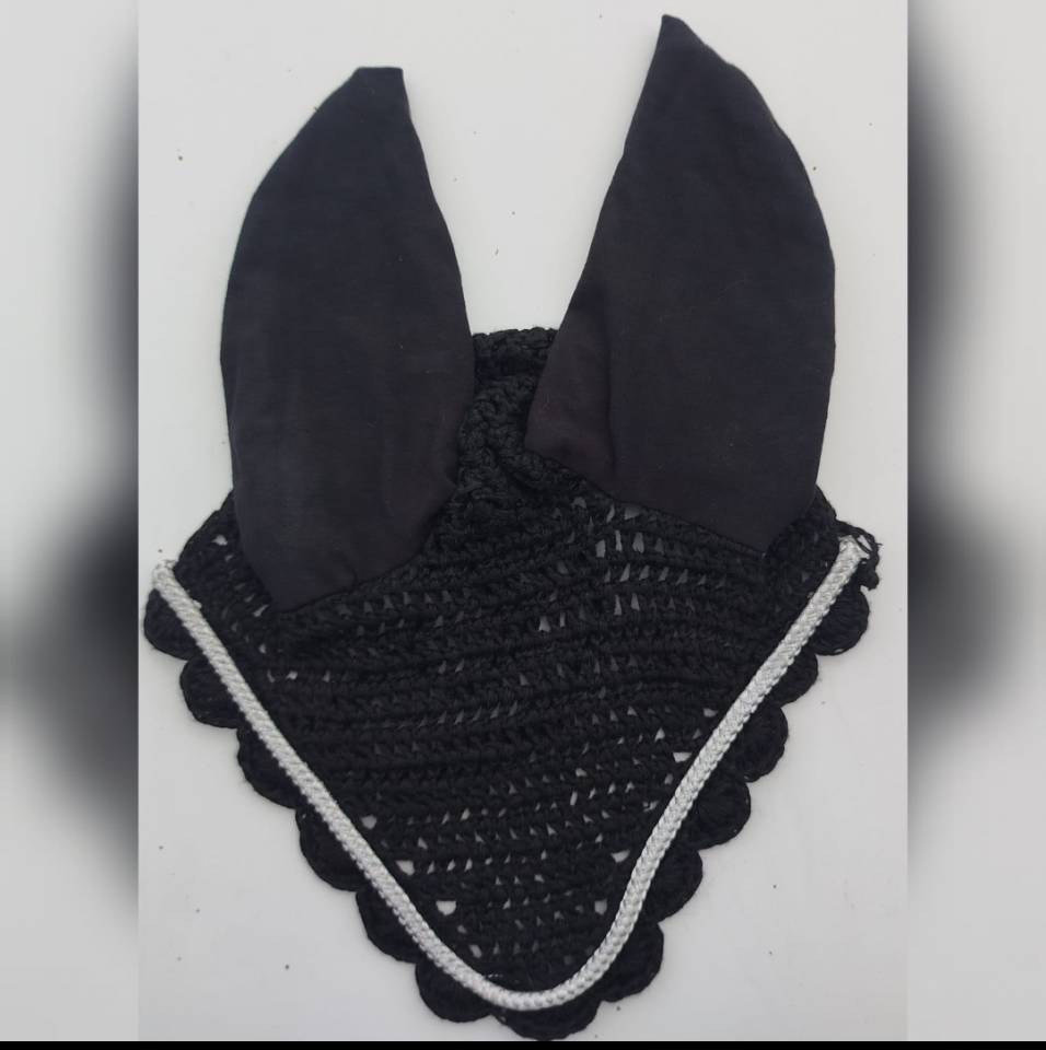 Bonnet cheval noir et liseré argentéPoney (S) / Cob - Pur-sang (M) / Cheval - Full (L)