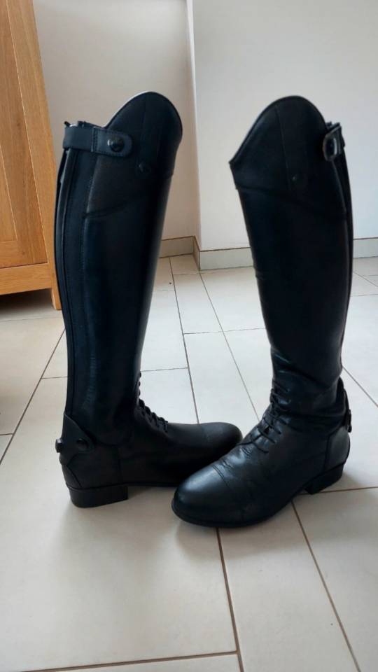 L'une à été utilisée un peu et la 2e est complètement neuve (le vendeur nous avait vendu 1 botte 37 et 1 botte 38 d'où le fait qu'une seule des 2 à été un peu utilisée)