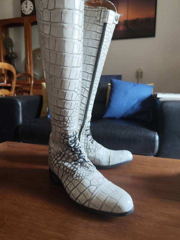Bottes d'Equitation en T37,5, fabrication artisanale unique au monde. État neuf . Jamais porté. Juste exposé sur un salon en Allemagne.