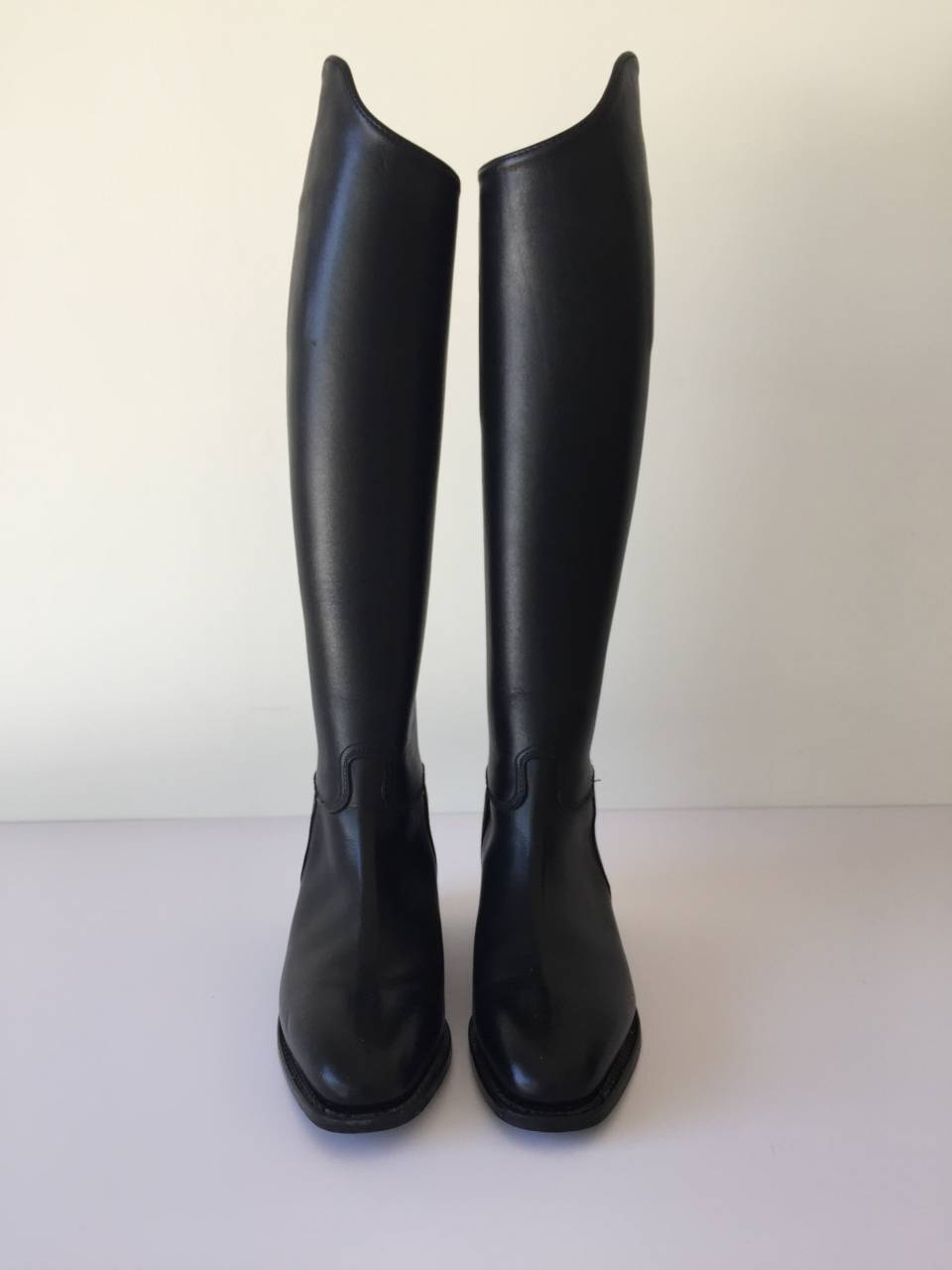 Pointure 3 1/2, correspond théoriquement à un 36,5 mais taille grand. Correspond en réalité à une pointure 37. Mollet 31 cm ; Hauteur tige intérieure 43cm ; Hauteur tige arrière genou 48 cm ; Hauteur tige extérieure 49 cm ; Hauteur talon 2,5 cm