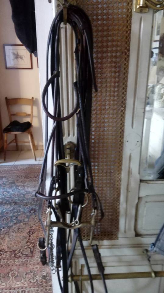 Bride cuir rond Schiltz très rare en parfait état . Mors de bride avec canon tournant il peut ainsi bouger dans la bouche si besoin .Couleur châtaigne .Schiltz faisait de la sellerie comparable à celle de Hermes (cf Google pour infos) .Réglable en têtière ,beaucoup de trous ,donc de tailles possibles