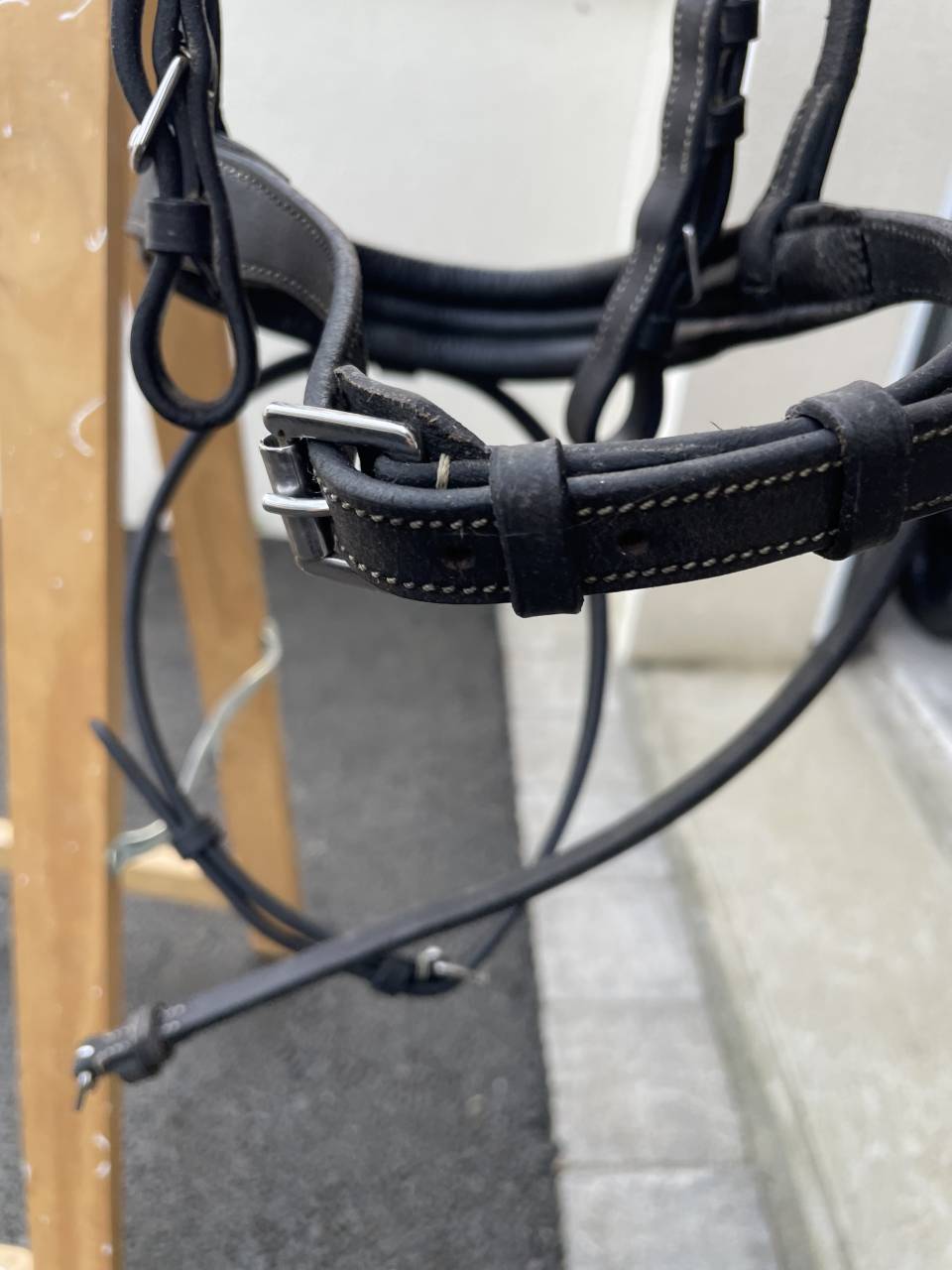Bridon en cuir noir avec la paire de rêne.