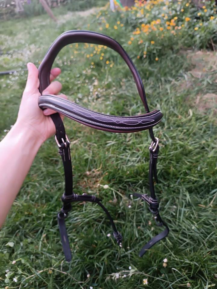 Bridon Liberty collection one de Jump’In, noir, taille cob (en réalité taille pour cheval car taille TRÈS grand), quasiment neuf car mis pour essayer 3x. Aucune trace en lien avec les essais. Je le vends car finalement suite aux courts essais il ne convient pas à ma jument. Vendu dans son carton d'origine.