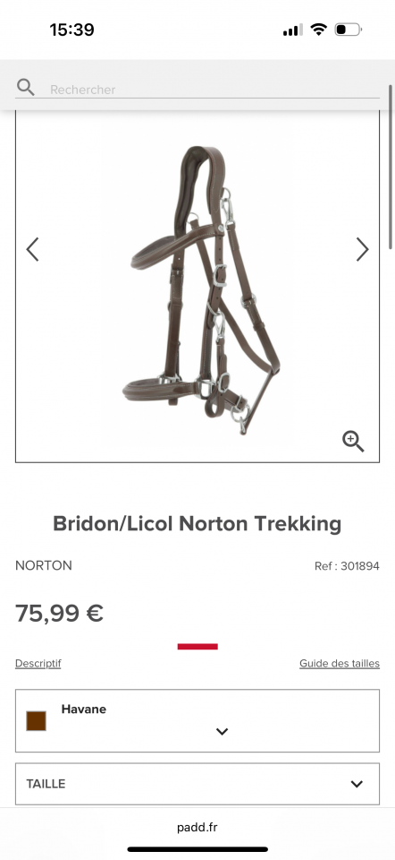 | Taille de bridon | Type d'équidé | Hauteur du garrot |