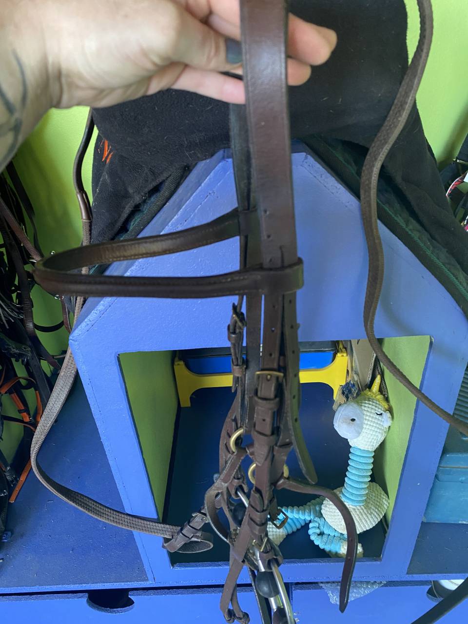 Bridon muserolle croisée peu servi mais usure du temps.