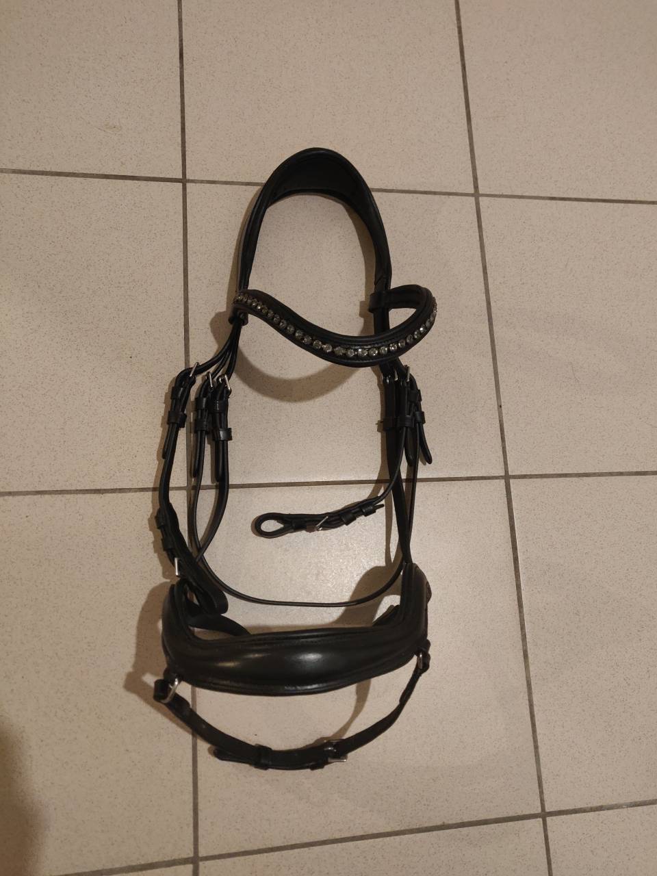 Taille cob mais convient sans problème à un cheval. Bridon utilisé moins de 6 mois. En parfait état.