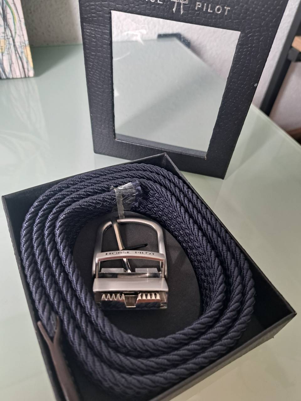 Vends ceinture Horse Pilot neuve, coloris bleu marine. Taille ajustable, boucle métallique siglée