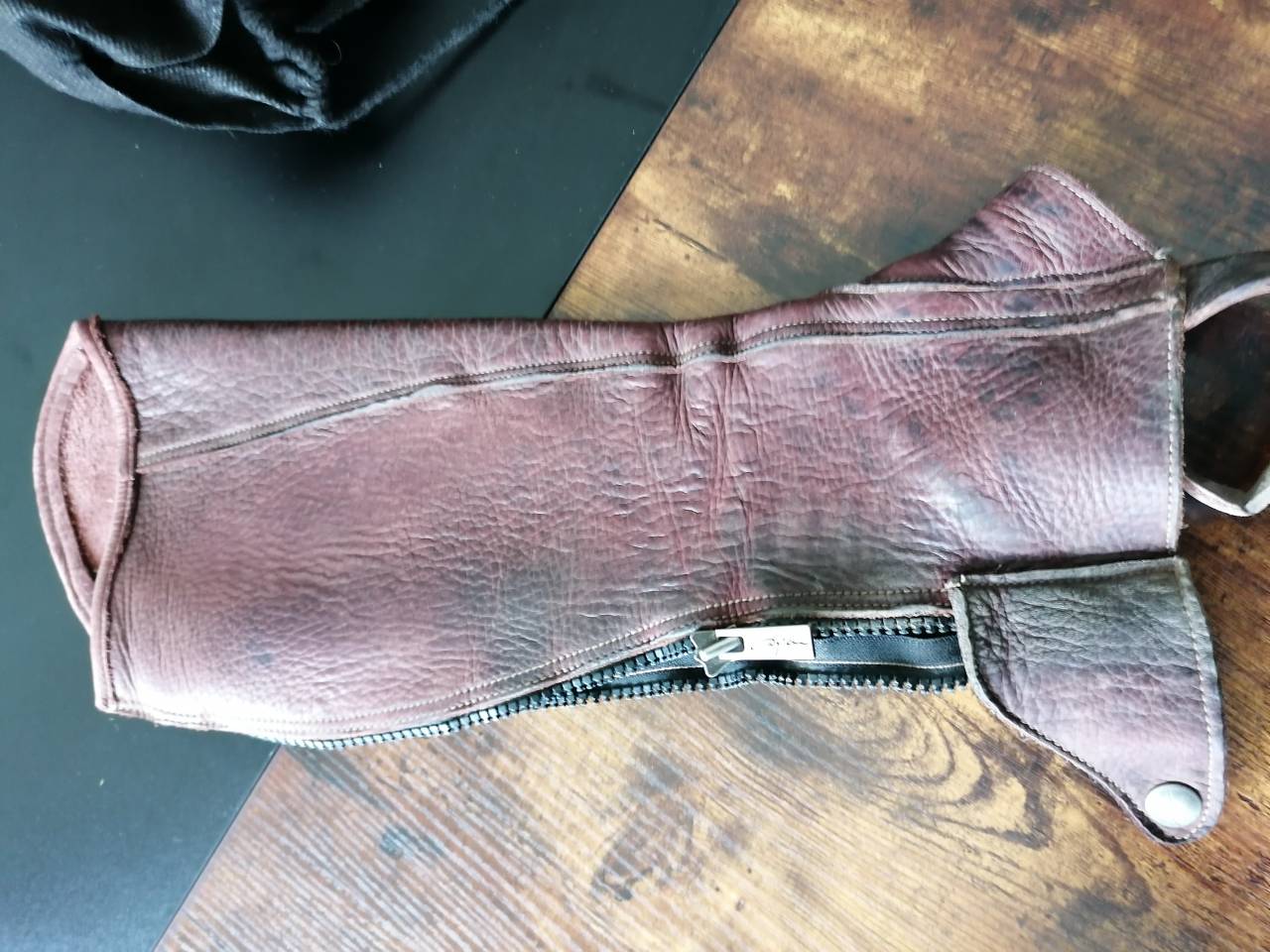 Les mesures déterminant la taille de vos mini-chaps doivent être prises vêtu de votre tenue d'équitation habituelle (culotte d'équitation et chaussettes hautes si vous en portez). Nous vous invitons à prendre les les mesures de vos deux jambes, il est courant que d'une jambe à l'autre la mesure du tour du mollet varie.