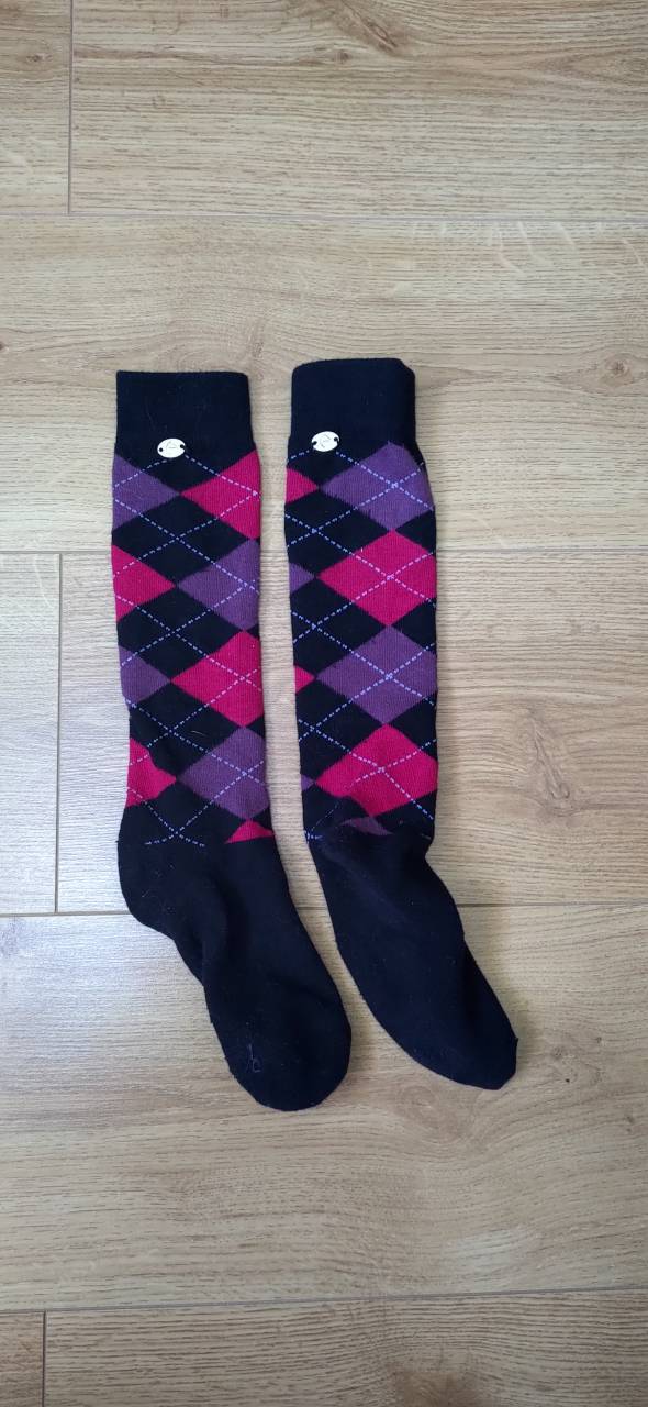 Vend chaussettes Equitheme bon état, bien entretenues. L'une des médailles est décousue d'un côté (voir photo 2) mais n'a aucune conséquence sur l'usage de la chaussette.