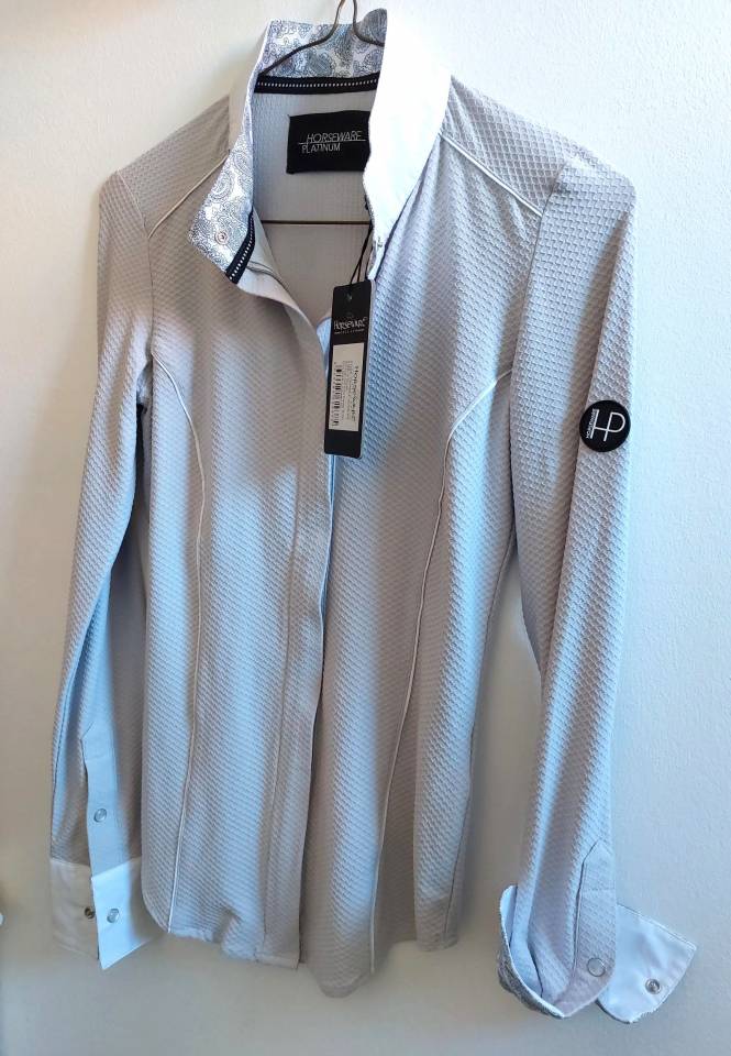 A vendre une chemise de concours Horseware Ireland à manches longues (F). L'état neuf avec une etiquette. Taille EUR 36/38, gris claire.