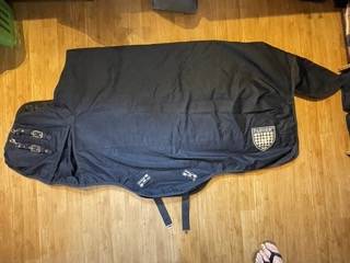 En parfait état, la couverture n'a été utilisée qu'un seul hiver car ne va plus à mon cheval qui a pris en carrure.