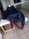 Couverture 1680 D Équit'm imperméable bleu et doublure polaire rouge.