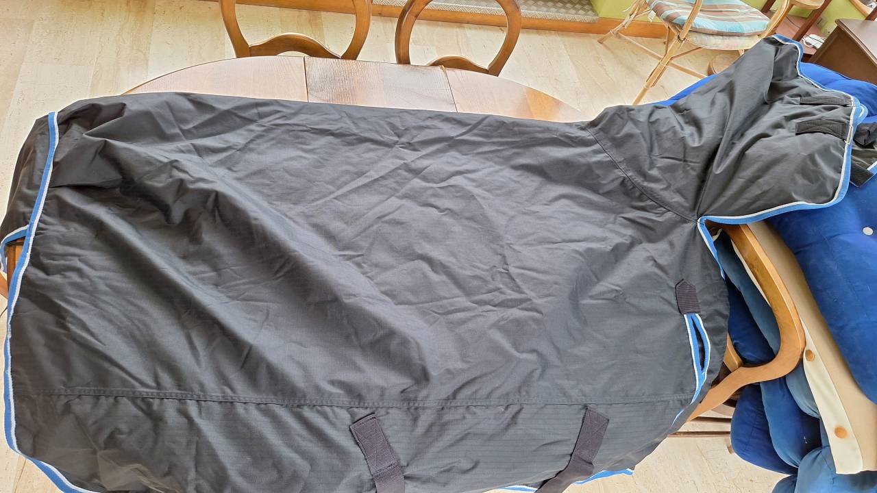 Couverture imperméable avec couvre coup qui n'a été jamais porté car passage à cheval elle est donc comme neuve