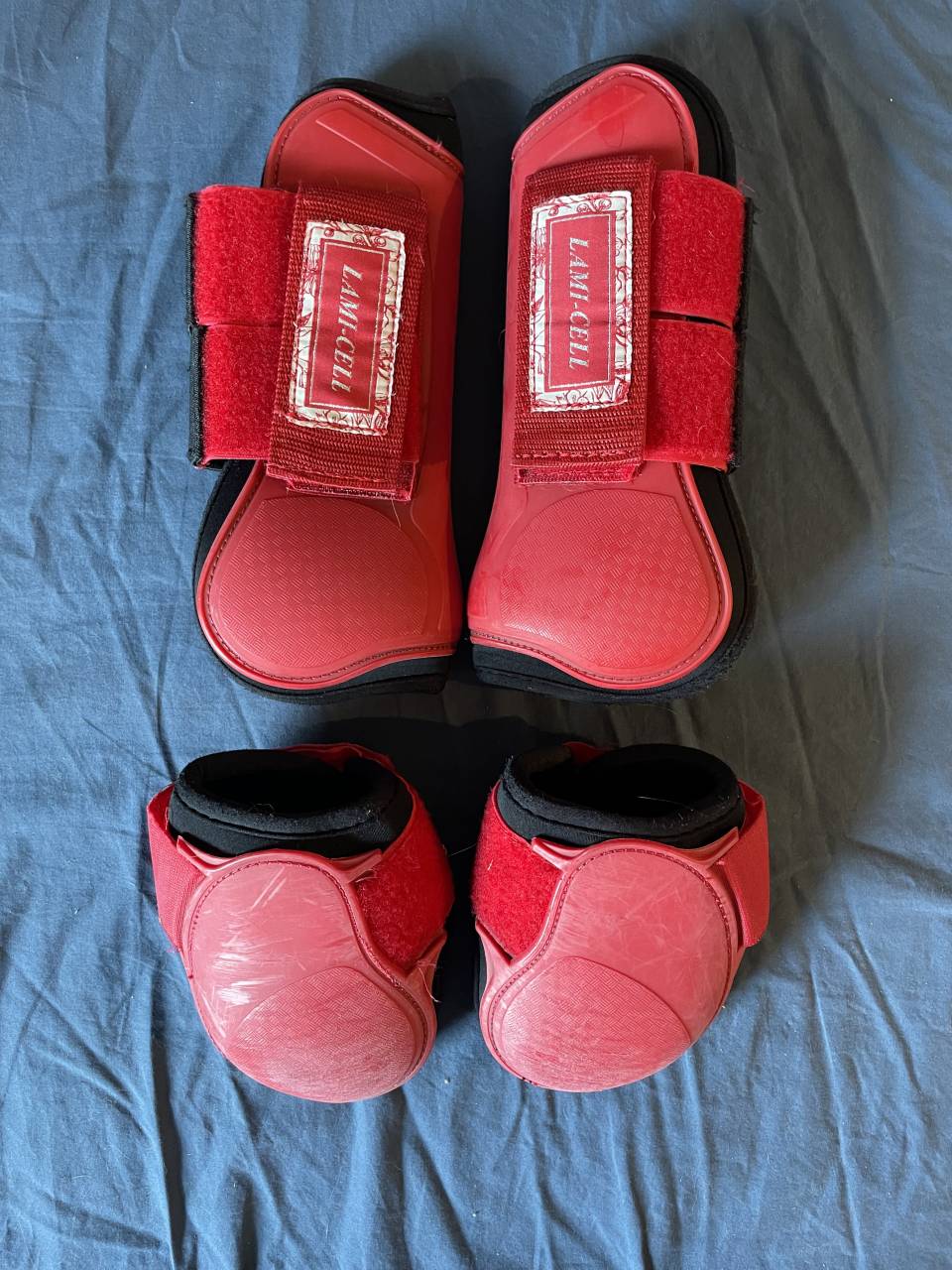 Ensemble guêtres et protèges-boulets rouges de la marque Lami-Cell.