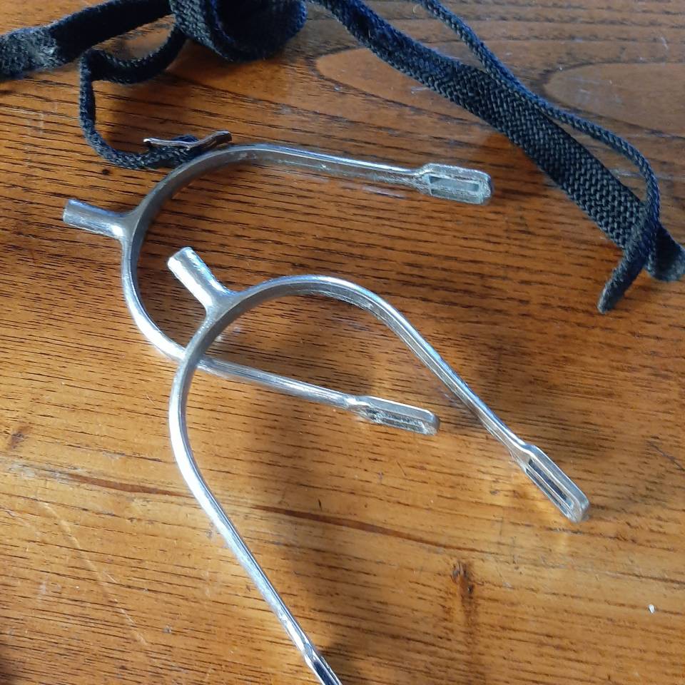 1 paire éperon Prince de Galles avec lien en tissu, quelques marques d'usures d'utilisation sont visibles