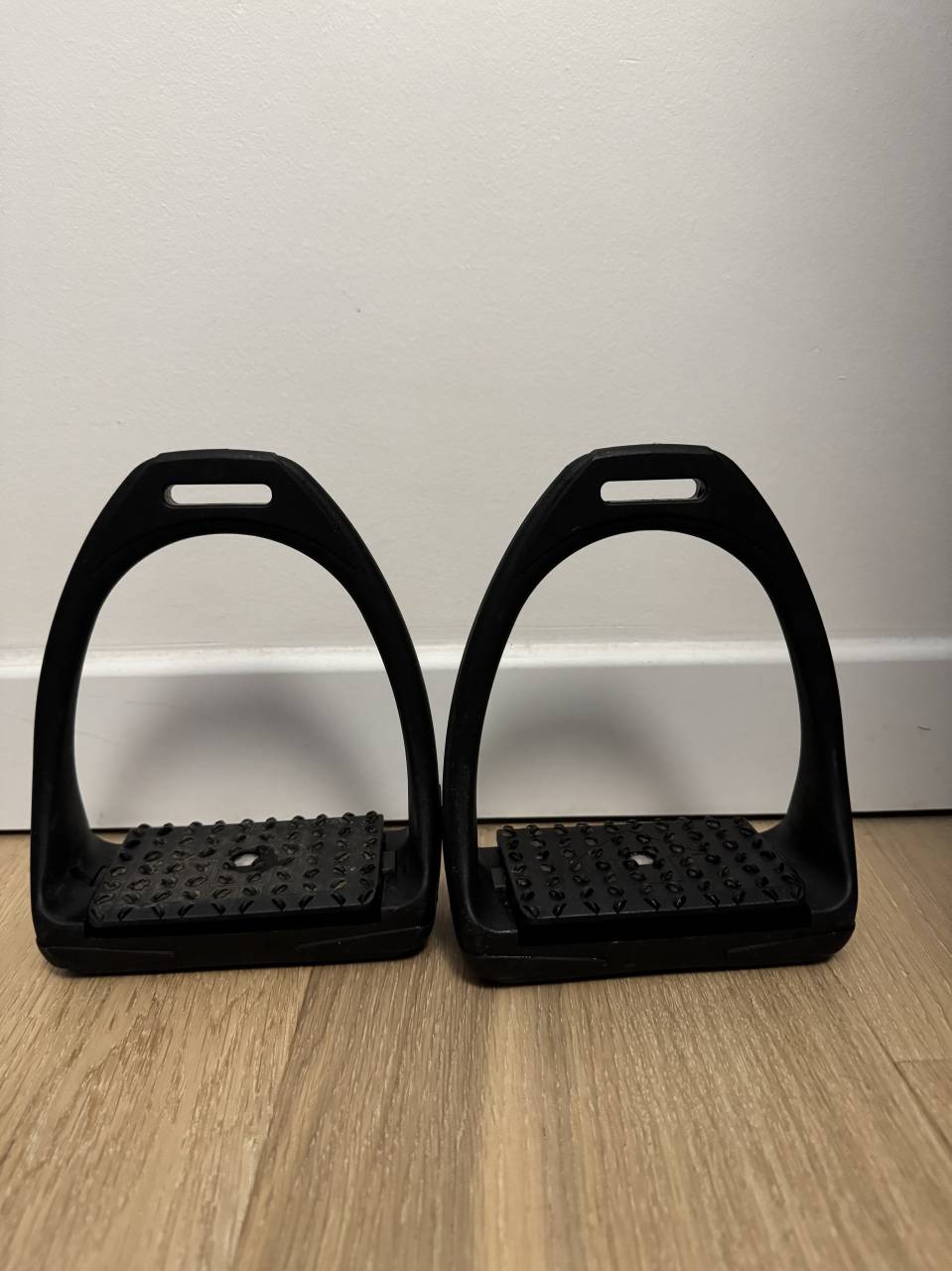 Bonjour, je vends des étriers noirs en taille adulte de la marque Compositi. (Pour 2€ de plus je vous laisse les étrivières). Ils sont en très bon état. N'hésitez pas si vous avez d'autres questions!