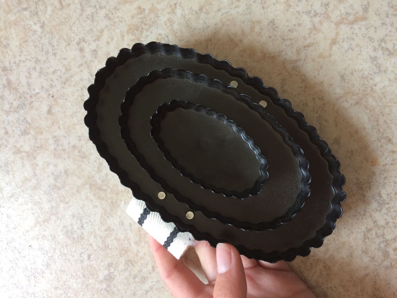 Etrille en acier noire, neuve, n'a jamais servi (encore l'étiquette).