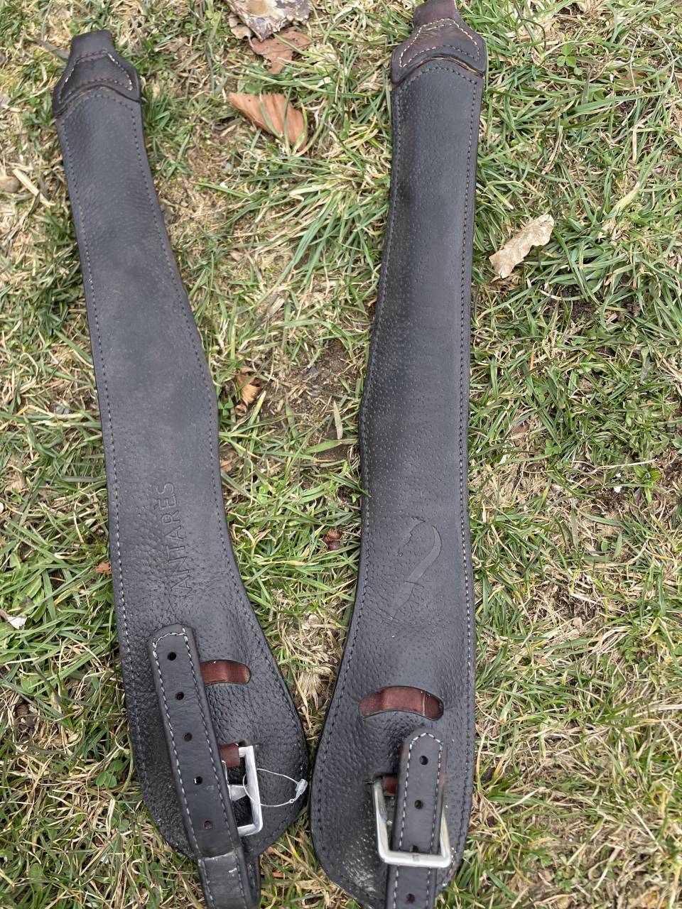 Étrivières mono branche anatomiques. Très bon état, teintées noir. Longueur 52/56 cm
