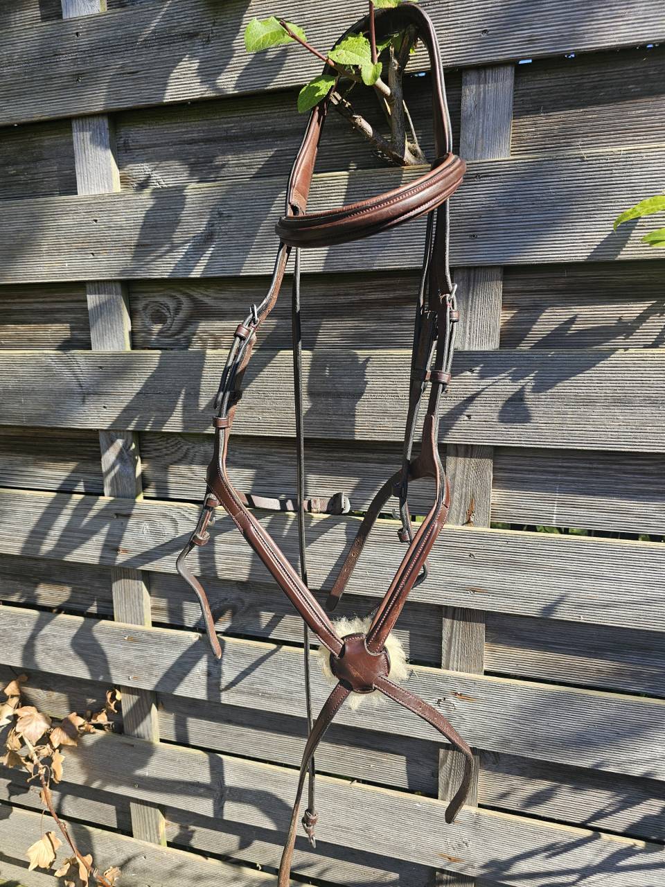 Filet Dyon muserolle croisée taille full. Très bon état du cuir et des coutures. Quelques frottements sur le rond de muserolle