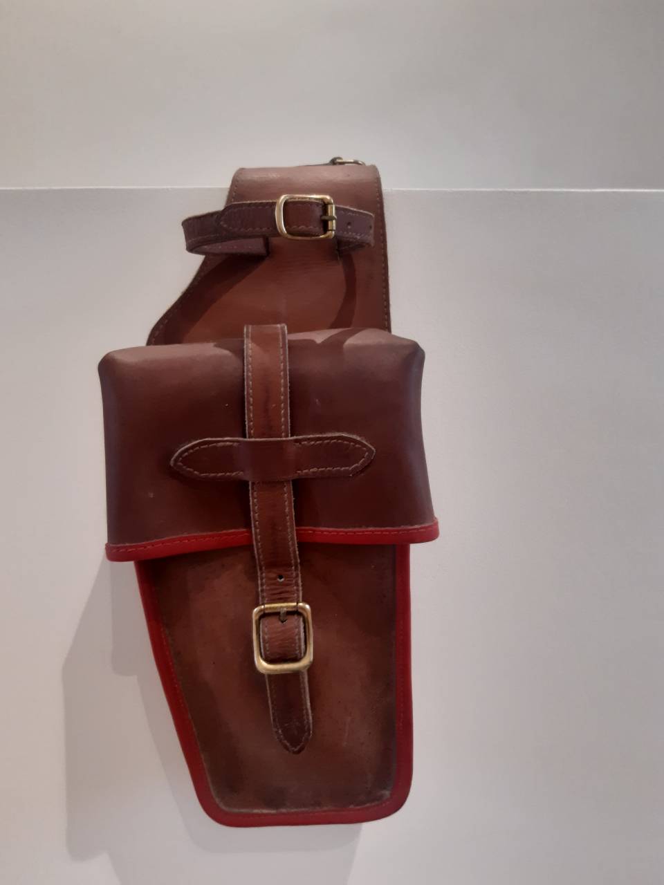 Av fontes cuir chromé marron et rouge,bouclerie laiton,très belle qualité, jamais utilisées fabriquées par sellier français