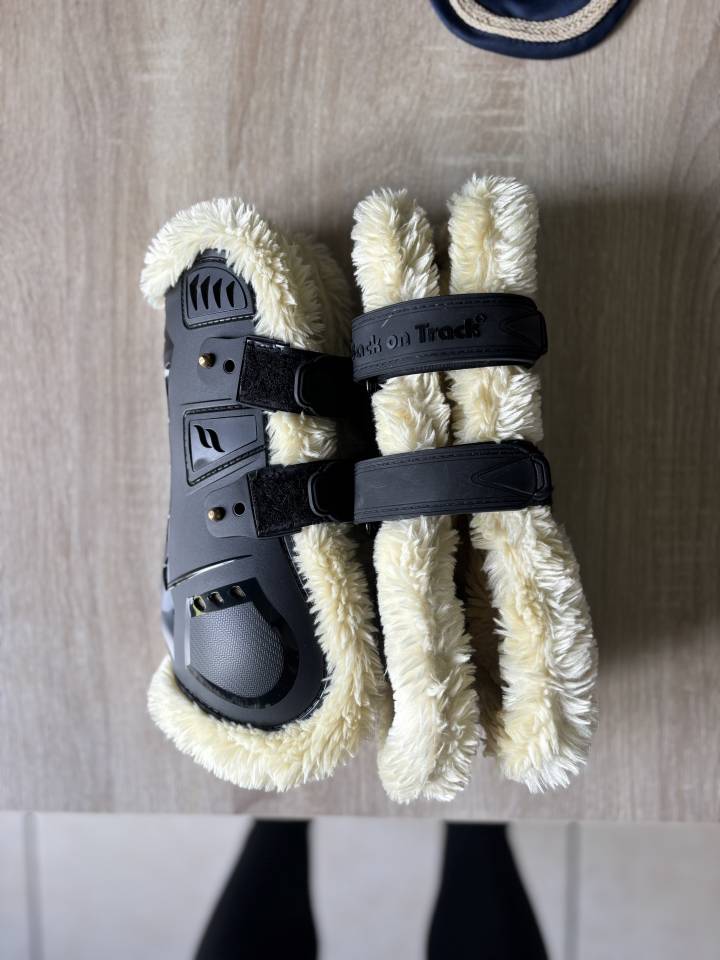 Bonjour, je vends mes guêtres Back On track, taille cheval noir avec moumoute. Très peu utilisé.