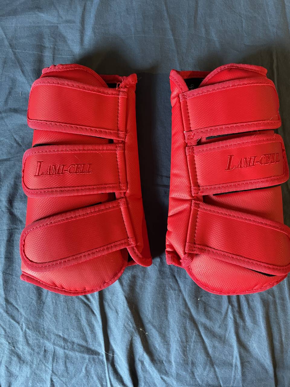 Paire de guêtres de dressage rouge de la marque Lami-Cell.