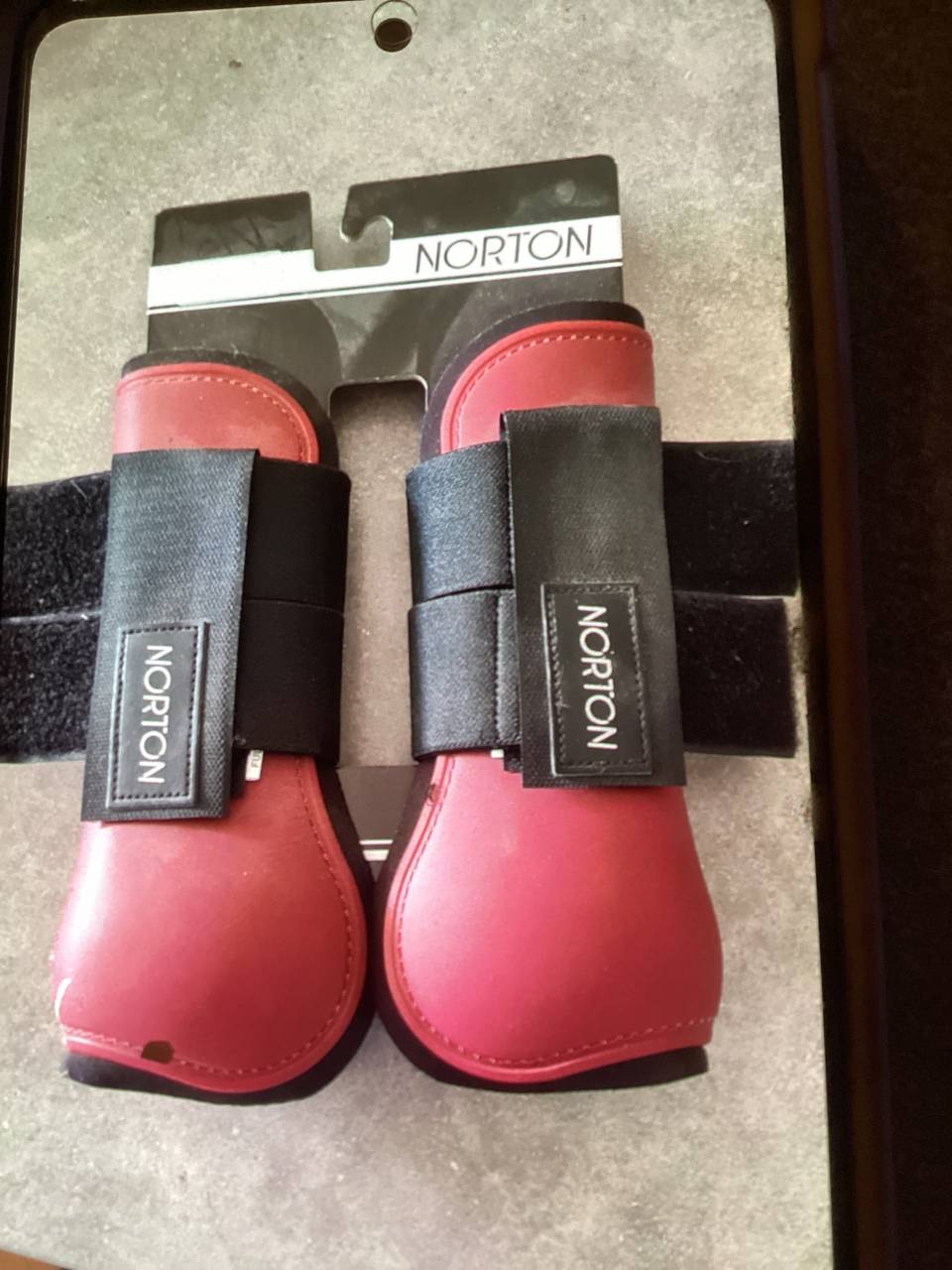 Vends guêtres Norton neuves, jamais servi, taille full, couleur bordeaux.