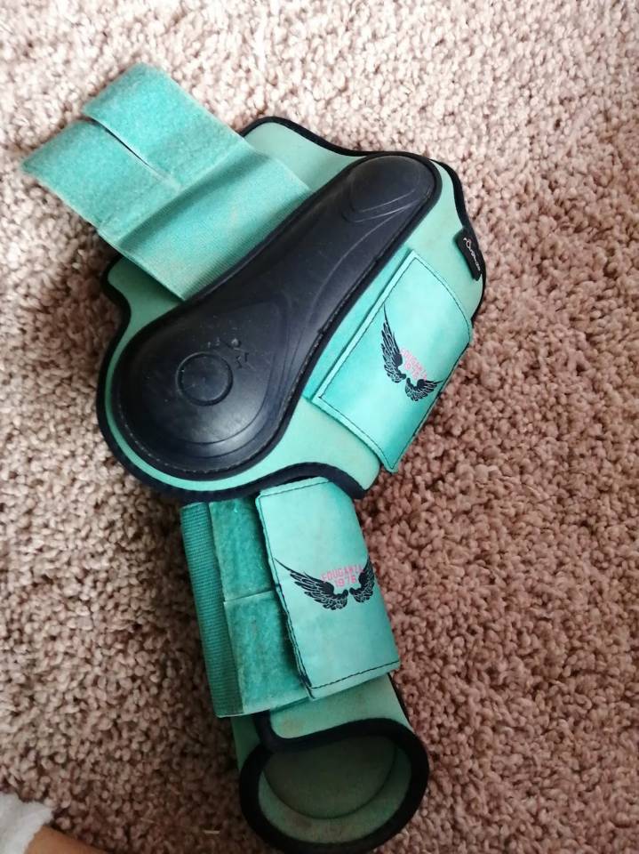 Je vends ces guêtres et protèges boulet bleu turquoise, de la marque fouganza, taille poney à 10 €.