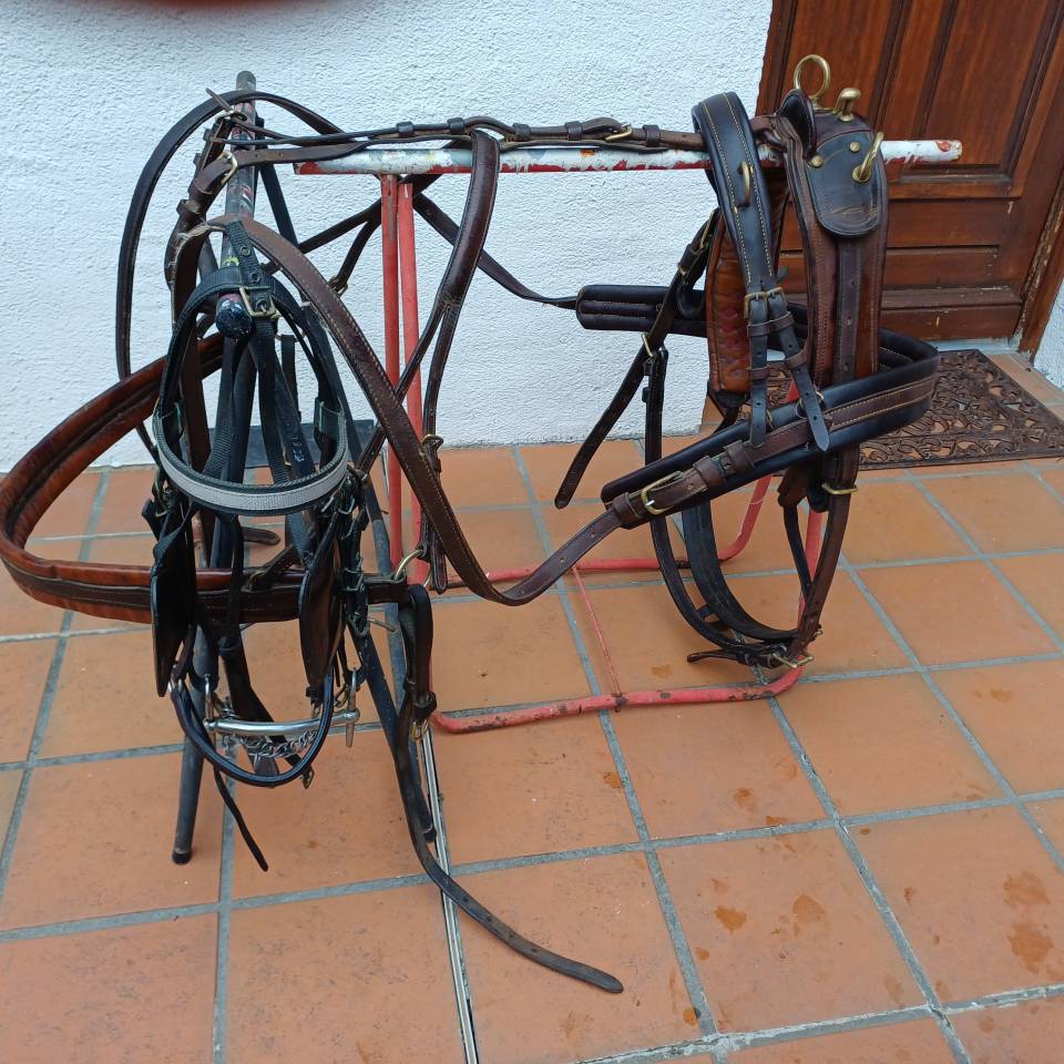 bonjour Suite cessation activité harnais attelage cuir petit cheval longues rennes brides œillères gourmette utilisées sur potiok 130 mais réglable pour plus grand a prendre sur place à chateau renault indre et loire