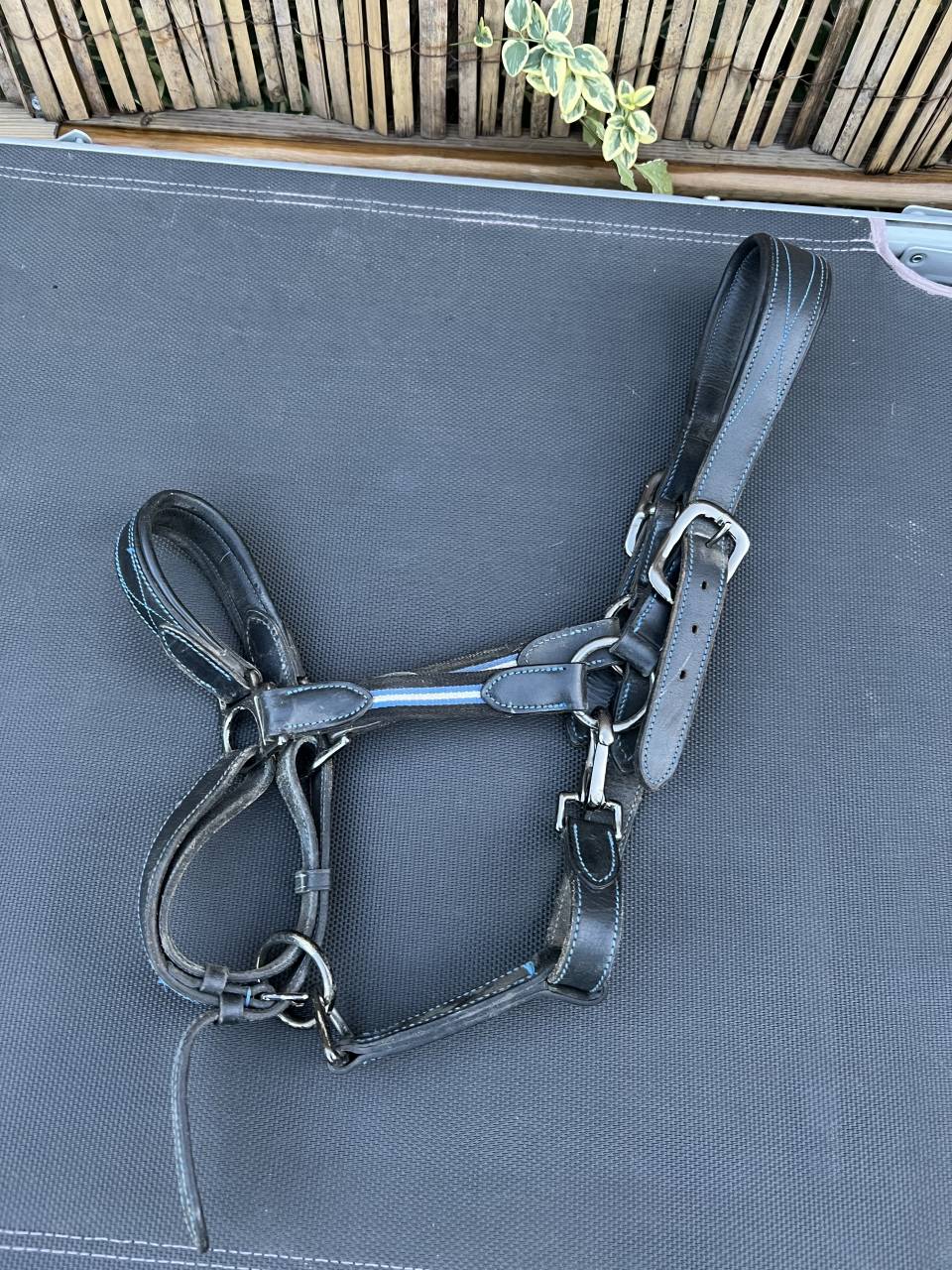 Bonjour, je vends mon licol en cuir de la marque Fouganza, il est en très bon état. Le licol est noir avec des liseré bleu ainsi que les surpiqûres. Le licol est réglable des deux côtés donc il convient aussi bien pour des poneys que pour des chevaux. Cause de a vente: arrêt de l’équitation