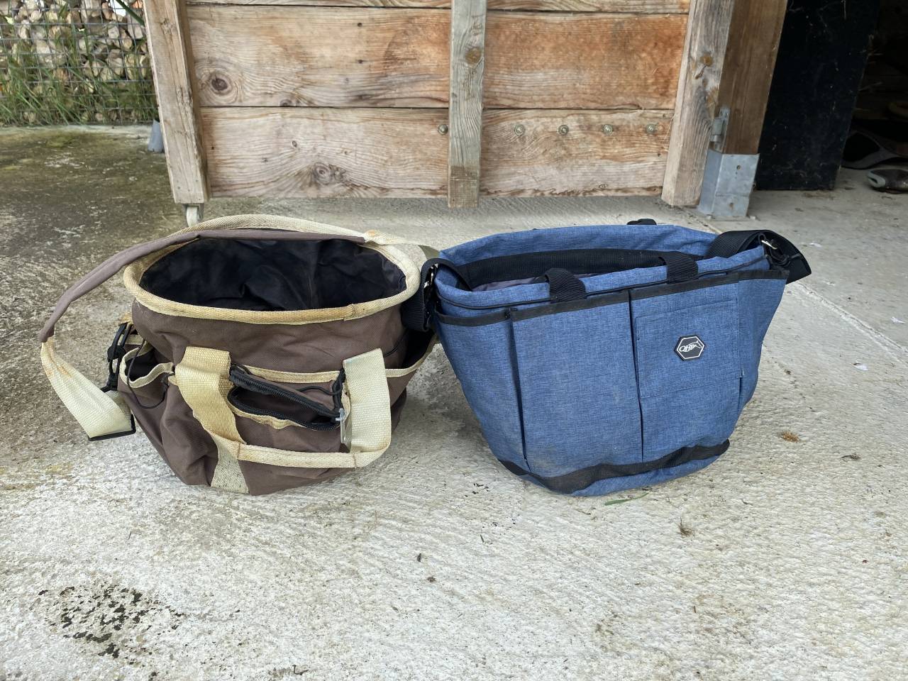 Je vends un lot de deux sacs de pansage pratiques et spacieux, parfaits pour transporter tout le matériel de soin pour votre cheval.