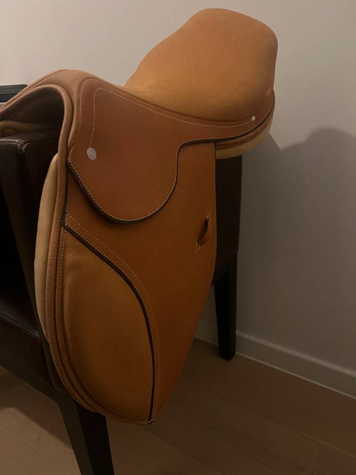 Original Hermès jumping saddle from 2001, handmade in France – stamped with model no. 39239.