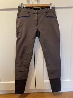 Pantalon d'équitation de la marque Spooks gris (avec reflet un peu mauve), full grip avec licrat dans le fond.