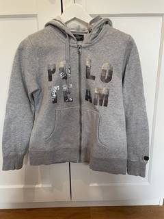 Pull gris clair avec fermeture éclair et capuche de la marque HV Polo.