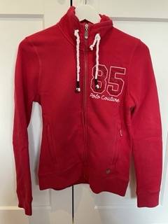 Pull rouge avec fermeture éclair de la marque HV Polo.