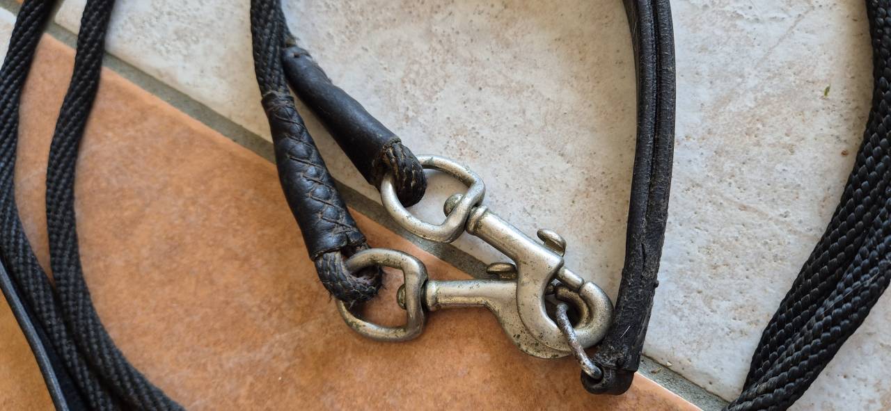 Renes allemandes cuir et corde, noires.taille cheval.Avec passe sangle.