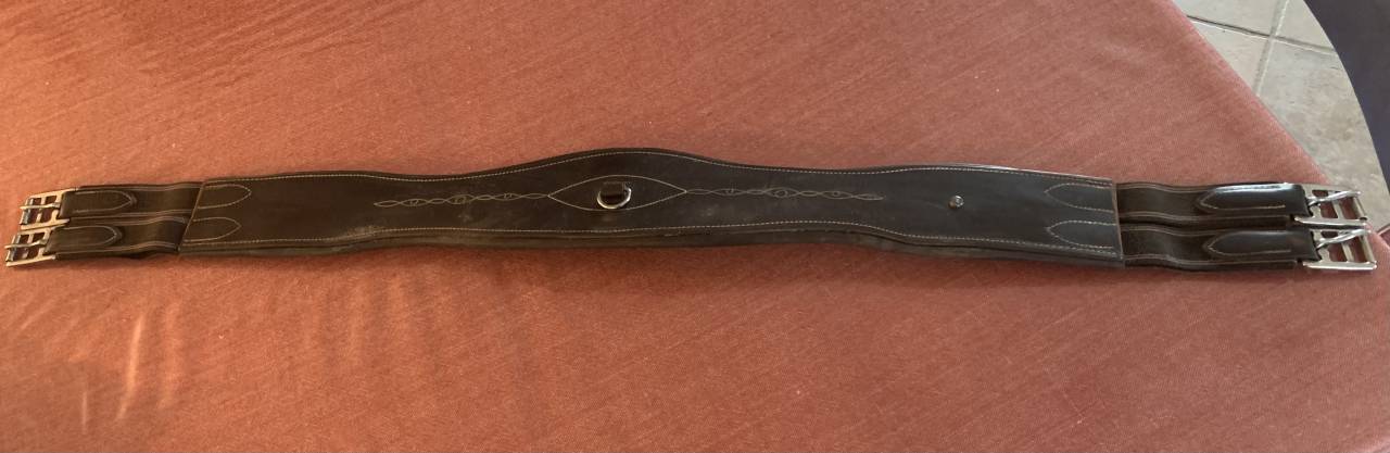 Sangle fouganza en cuir marron, taille 115cm, en bon état.