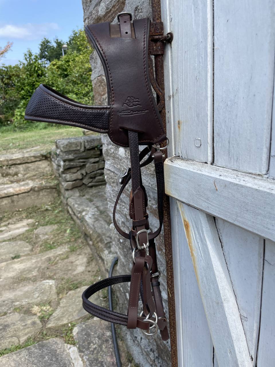 Cuir et Biothane. Confort moelleux pour le contact cheval. Boucles acier inox. Très peu utilisé. Entretenu et stocké à l'abri de la lumière et de la poussière.