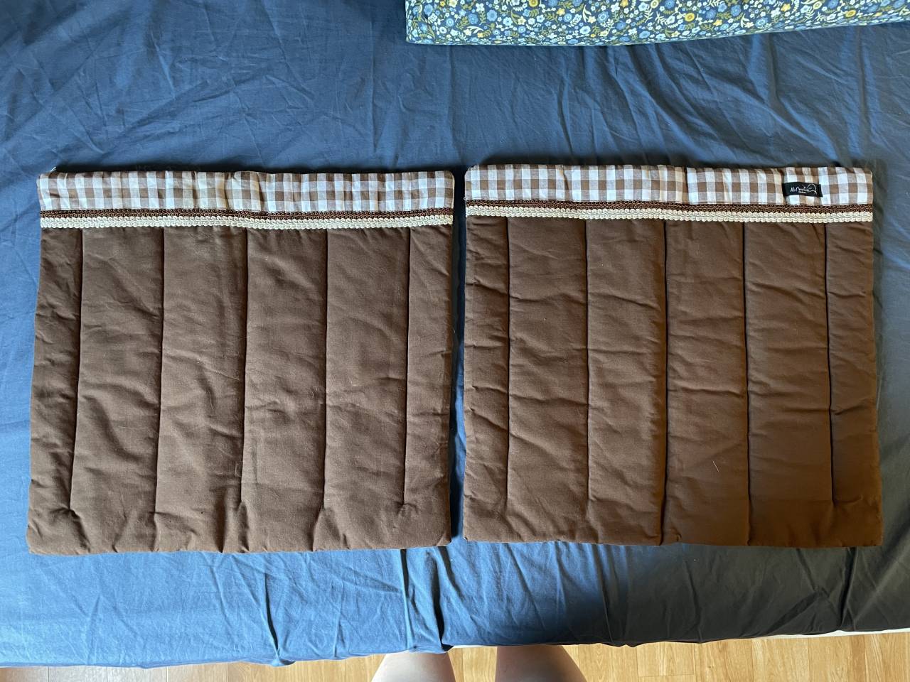 Lot de 2 sous-bandes brunes avec le dessus en vichy brun, réalisé par une créatrice belge H. Créations