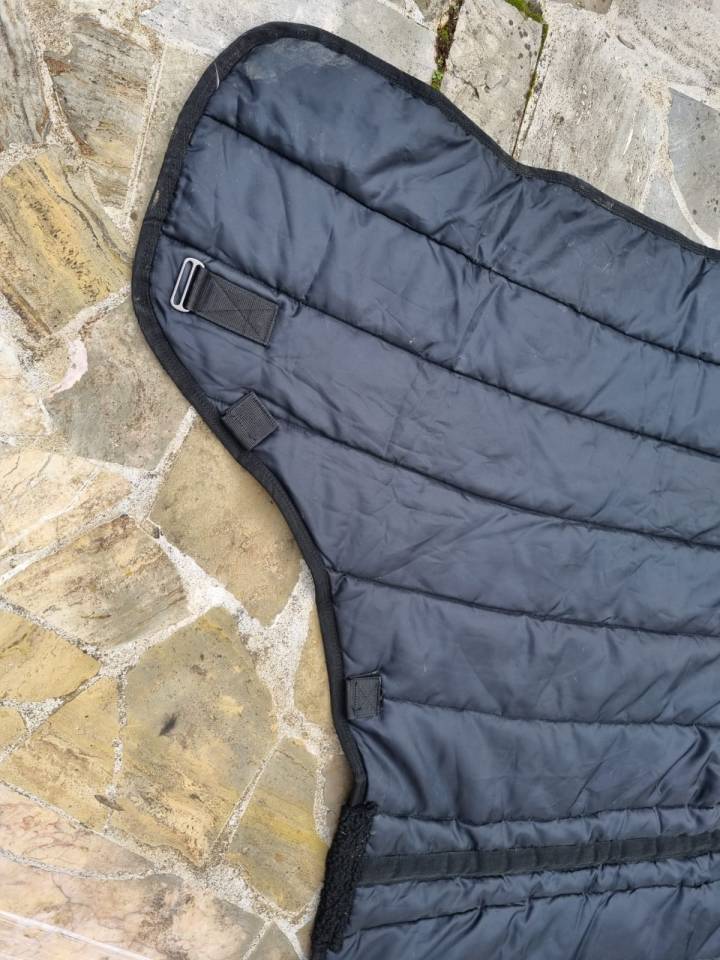 Sous-couverture amovible 210D, matelassée 300 g, Pattes de fixation à l'encolure et mousquetons tournants pour courroies de cuisses.