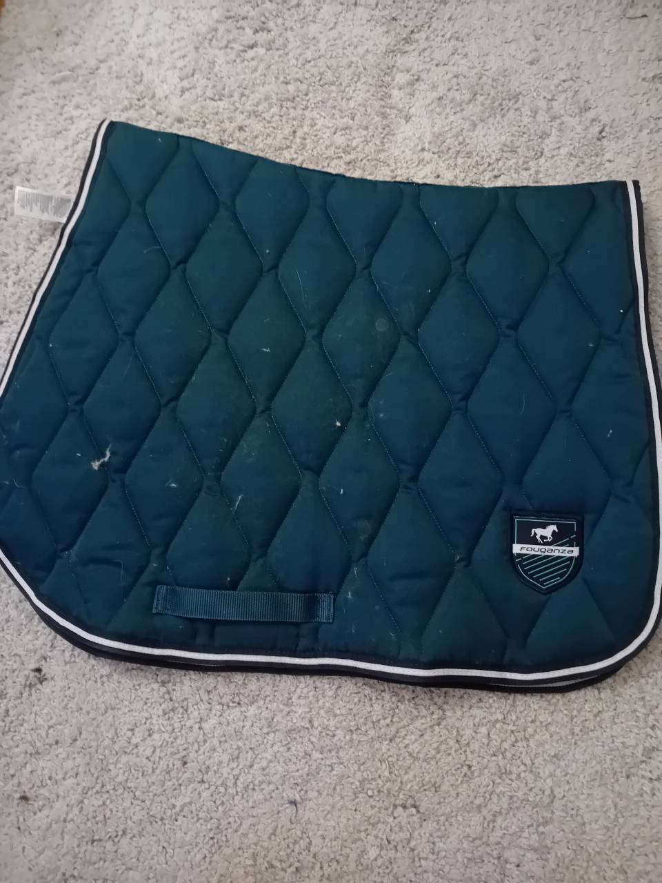Tapis fouganza couleur pétrole il est en bonne état très peu utiliser, il y a quelques taches qui partiront au lavage avant l'envoi