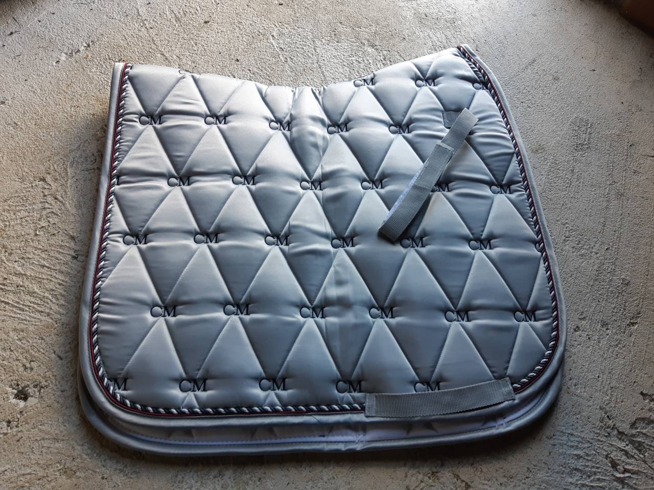 Je mets en vente ce tapis, couleur gris avec des écriture CM dessus. Taille Full, coupe dressage